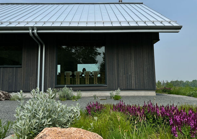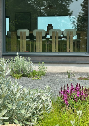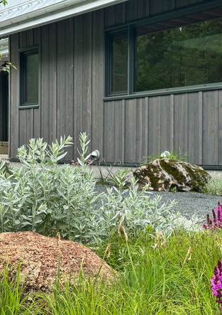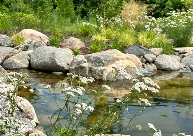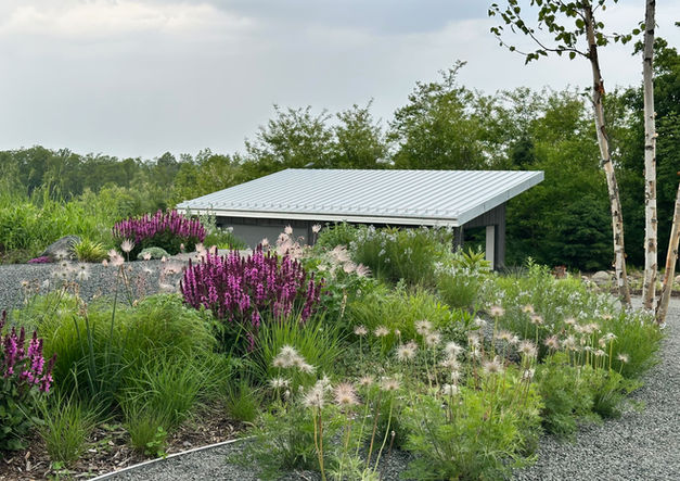 Together with our strategic partners, we completed this new installation late in the 2024 season. The brief was to create an effortless, dynamic landscape that merges seamlessly with the surrounding natural meadows and incredible views from the home and that emphasizes a sense of place. It includes a contemporary front entrance, gravel gardens, natural swimming pond, feature boulders and natural stone steps. A mix of native and pollinator-friendly plantings was installed in the front entrance, expansive wildflower berms were created to echo the hilly countryside that surrounds the property and large designed meadows were installed surrounding a newly constructed pond. Swales and French drains were installed to ensure positive drainage and re-infiltrate stormwater into the the aquifer. We still have a few super exciting elements to add in Phase III of this amazing project - a green roof and an eco-lawn!